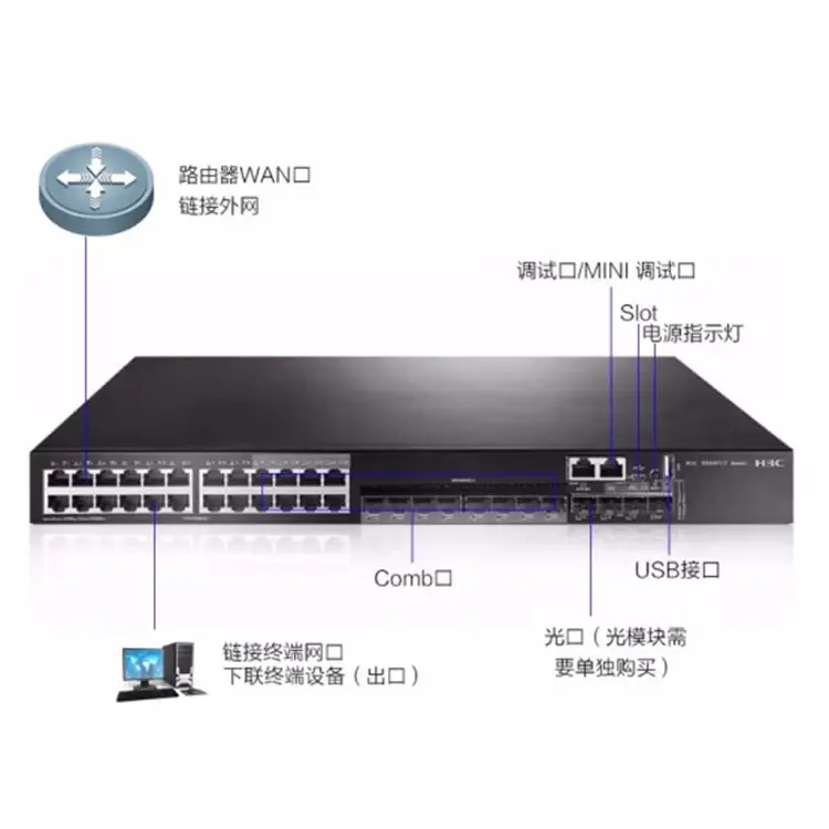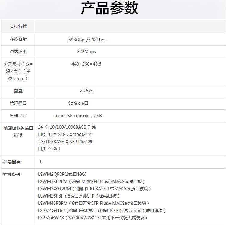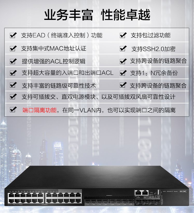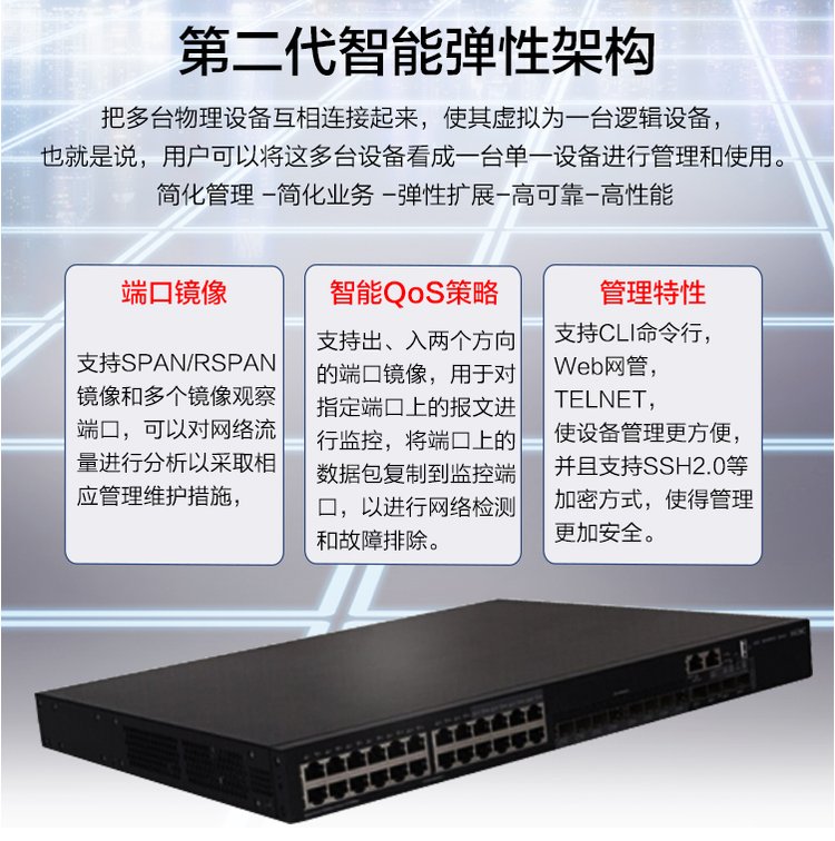 端口描述:24个千兆电口(含8个千兆光口)4个万兆光口
