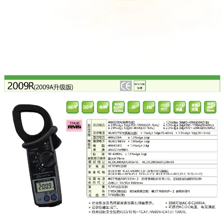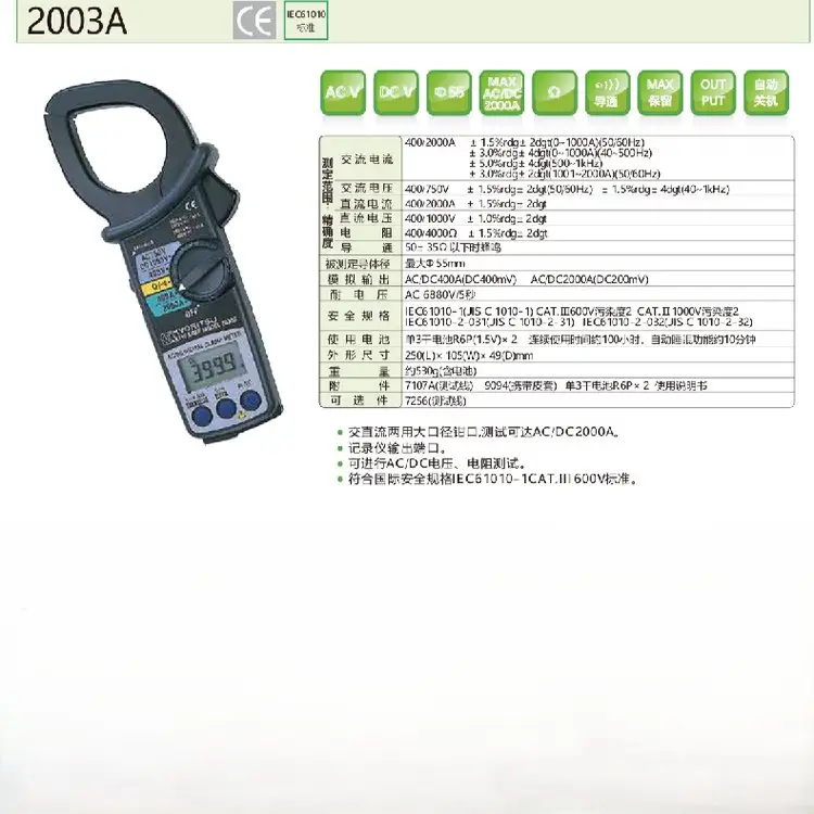 标准配置:7066A(测试线) R03(AAA)(1.5V)×2 9094(携带皮套) 使用说明书